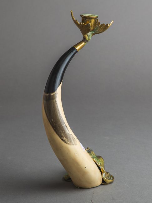 Messingelemente m. Elfenbeinnachahmung aus Kunstharz, Entw. nach: Hauy Pouigo, Flosse m. Kerzentülle, Glasaugen, H. ca. 35 cm. Altersbed. Gebrauchsspuren.