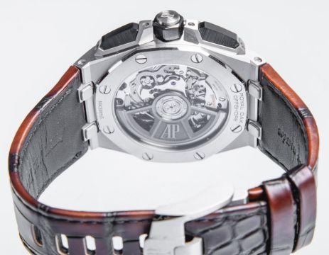 43mm-Modell, Gehäuse Edelstahl, Méga Tapisserie-Zifferblatt, Krone u. Drücker schwarze Keramik, 2 Paar Armbänder, aufgesetzte Indexe aus WG m. schw. Beschichtung, Zeiger m. Leuchtbeschichtung, Kal. 4401, Chronograph, Stunden, Minuten, kl. Sekunde u. Datum, Automatikwerk, Box u. Papiere anbei. Neuwertig, ungetragen.