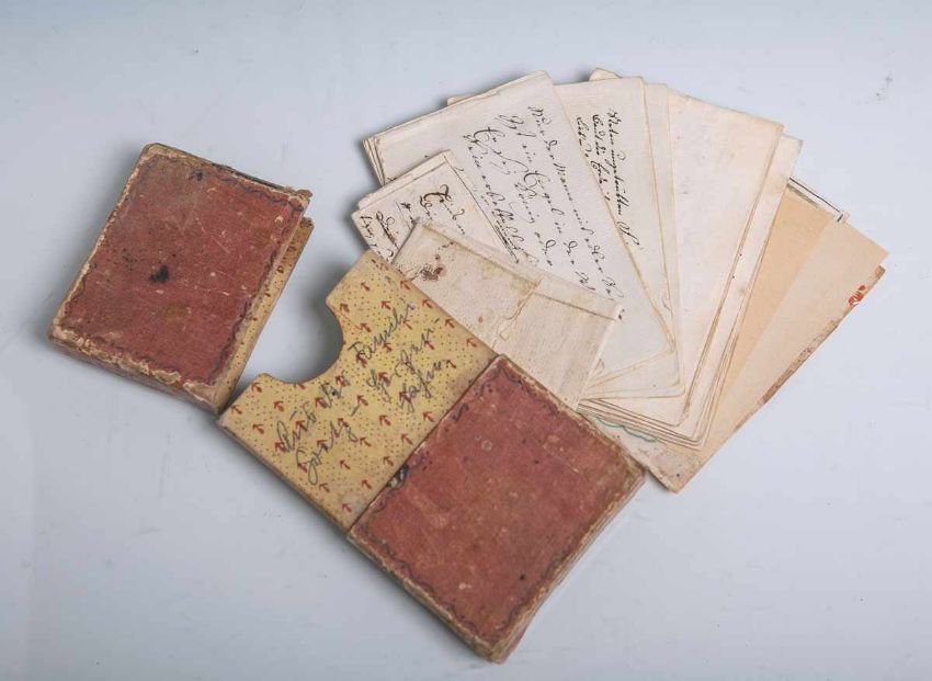Zeichnungen, Scherenschnitt u.a., datiert, Papier m. Goldschnitt, im Etui aus Karton. Altersgem. Zustand.