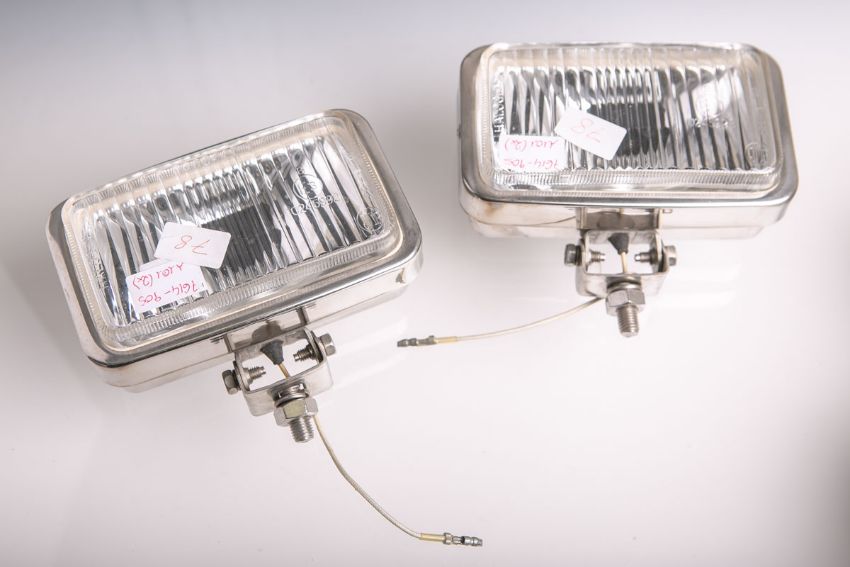 2 Halogen-Zusatzscheinwerfer (wohl 1960/ 70er Jahre), Gehäuse verchromt, Nr. SAE-F-83 / 0245992, ca. 7 x 15,5 x 9 cm. Guter Zustand, Funktion nicht geprüft.