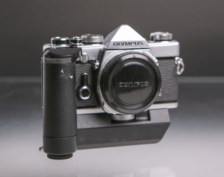 Kameragehäuse "Olympus OM-1" m. Motor. Funktion nicht geprüft.