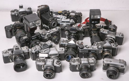 Konvolut von 38 versch. Kameras, Objektiven u. Zubehör.