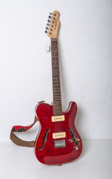 Hals aus Ahorn, Korpus: wohl Kiefer, Palisander-Griffbrett, 2x Tonabnehmer: Single Coil, Toggle-Switch, 1x Volume- u. 1x Tonregler.
