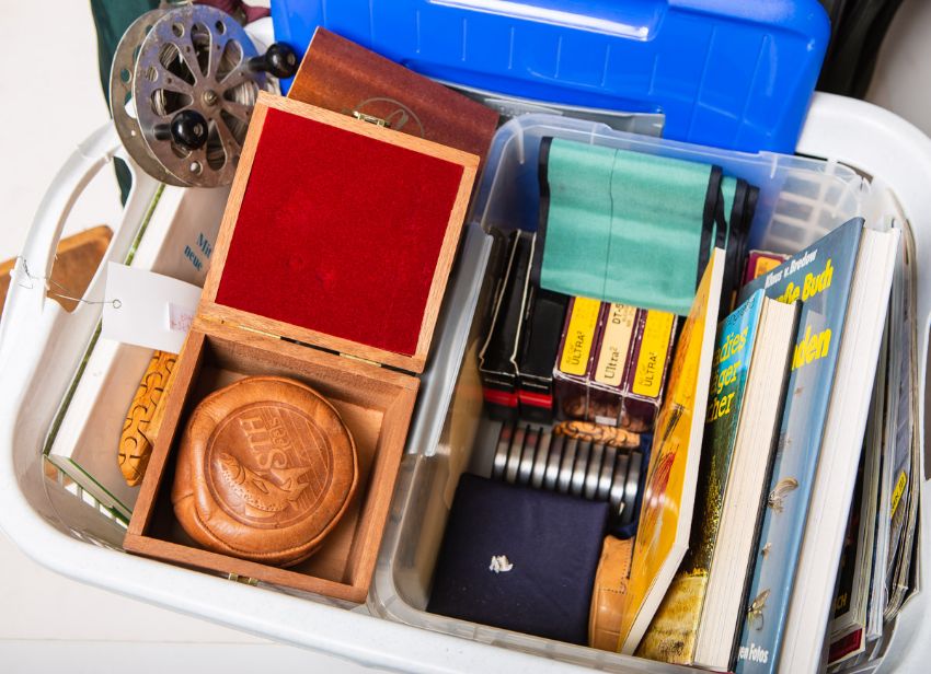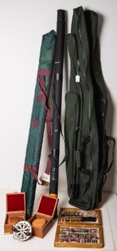 u. vieles Weitere, alles in einer Rutentasche und einem weiteren Korb. Gebrauchszustand. Verweis auf die Vorbesichtigung.