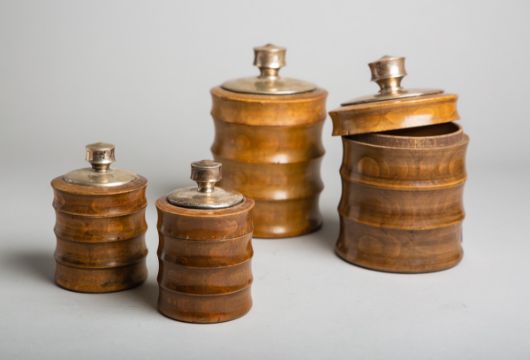 aus 800 Silber, je gestempelt: Hersteller / Feingehalt / Halbmond u. Krone, 2x H. ca. 18,5 cm u. 2x H. ca. 12 cm. Altersbed. Gebrauchsspuren.