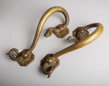 Gegenstücke, je m. 8 Schrauben zu befestigen, je ca. 35 cm. Gebrauchszustand, l. Oxidationsspuren.