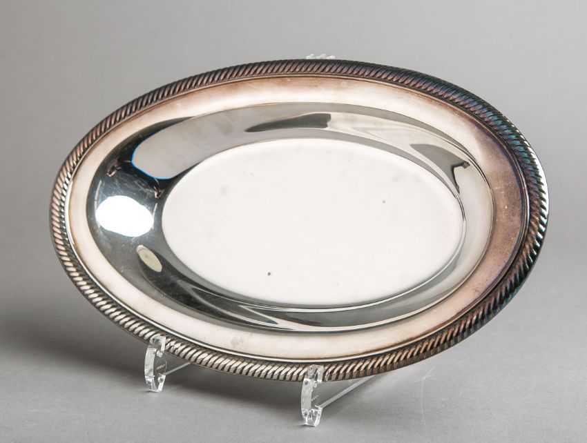Ovale Schale (International Silvercompany CO.), Metall versilbert, ca. 32 x 18,5 cm.