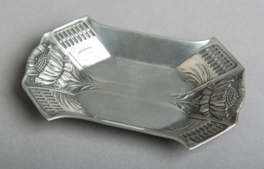 Form m. Jugendstil-Dekor, Zinnstempel: Hersteller, ca. 15 x 10 x 2 cm.
