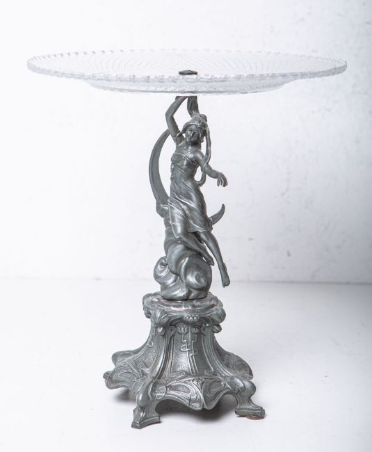 floral gearbeiteter Standfuß, H. ca. 37 cm, Dm. ca. 32,5 cm. Wackeliger Stand.