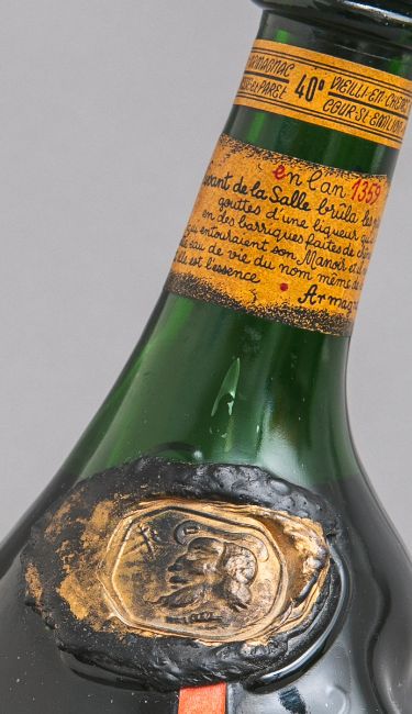 Glaswachs-Schulterknopf, 1500 ml, Vol. 40.0%, Flasche mit geneigtem Hals, Gr. ca. H: 30,5 cm.