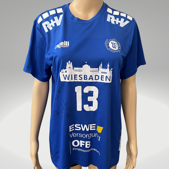 Gelegenheit ein original getragenes Heimtrikot von Milana Bozic aus der Saison 2023/24 zu ersteigern. Dieses einzigartige Originaltrikot mit VBL-Badge und Originalunterschrift der Spielerin ist ein tolles Erinnerungsstück aus einer Saison voller sportlicher Volleyball-Highlights!, Wettbewerb: 1. Volleyball Bundesliga Frauen, Saison: 2023/24, Trikotnummer: 13, Position: Zuspiel, Hersteller: Capelli Sport, Größe: L (women)