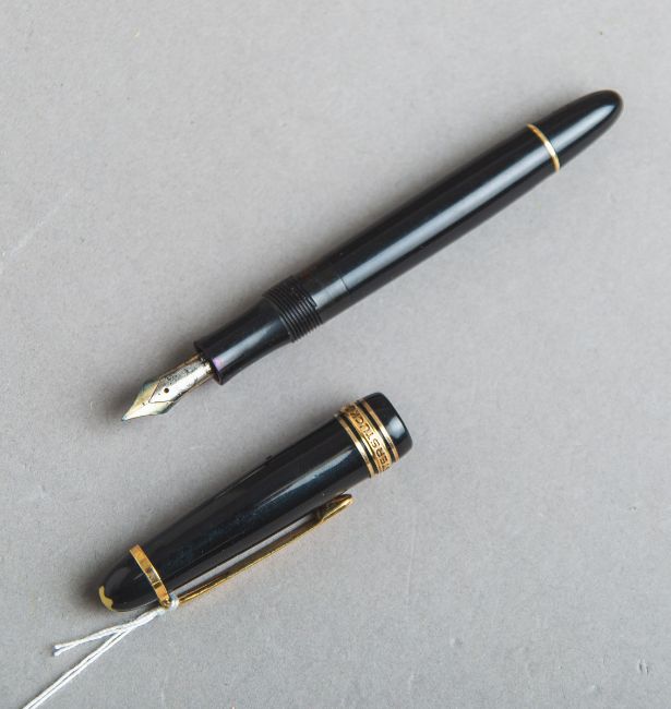 Kolbenfüller (Montblanc), Meisterstück, Feder aus 585 WG, Farbe: schwarz/gold. Guter