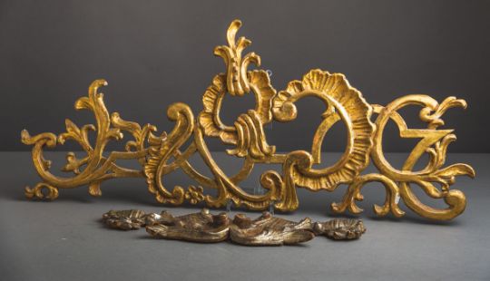 Versilberung, Gr. ca. 55 x 14 cm u. 1x Holz geschnitzt m. orig. Vergoldung, Gr. ca. 98 x 43 cm. Restaurierungsbed. Verweis auf Vorbesichtigung. Verpackung und Versand nicht durch das Auktionshaus möglich.