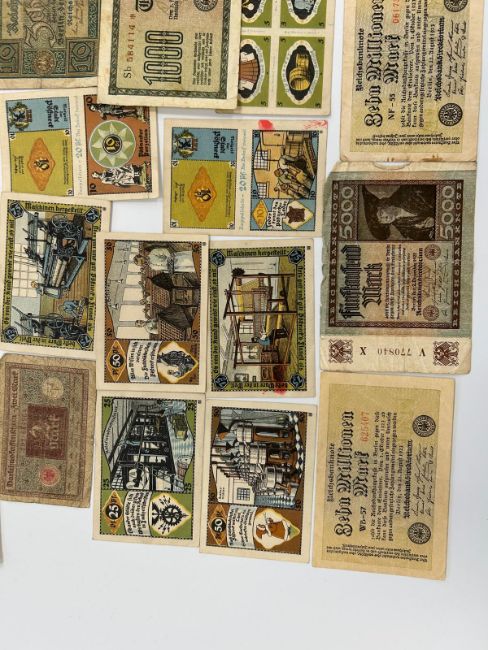 d. Stadt Pößneck (8x) u. div. Geld-Scheine / Reichsbanknoten. Verweis auf Vorbesichtigung.