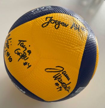 originalen Spielball aus der Saison 2024/25 zu ersteigern. Der Ball war gegen Galatasaray Istanbul im Einsatz und wurde zum Saisonende von allen Spielerinnen des VCW-Kaders handsigniert. Wettbewerb: 1. Volleyball Bundesliga der Frauen, Saison: 2024/25, Modell: Mikasa V200W mit DVV-Logo. "Action Bilder" by Detlef Gottwald.