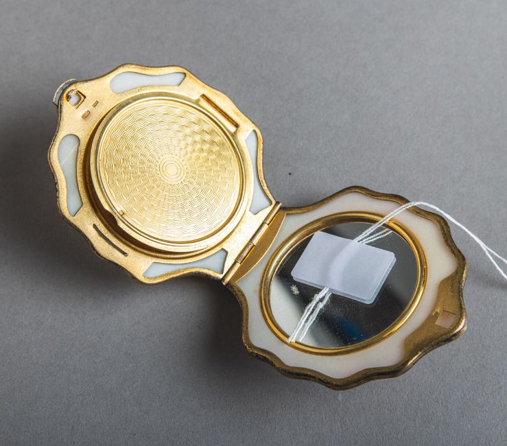 Spiegel u. Puderfach, gestempelt: Feingehalt / Hammer u. Sichel, Gr. ca. 8 x 7 x 3 cm.