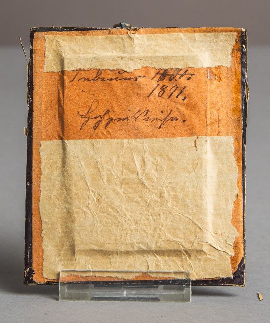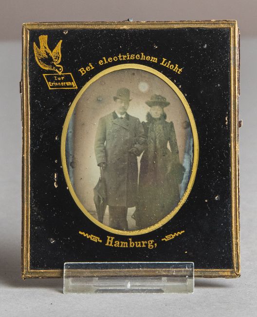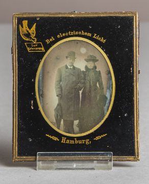 dat. "Februar 1891", vs. bez. (Goldschnitt) "zur Erinnerung. Bei electrischem Licht - Hamburg", Gr. ca. 12 x 10 cm.