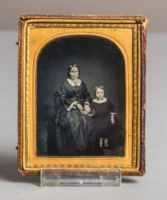Daguerreotypie (19 Jh.), Darst. einer Mutter m. ihrer kl. Tochter, Gr. ca. 12 x 9,5 cm.